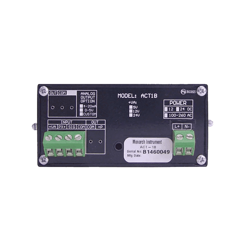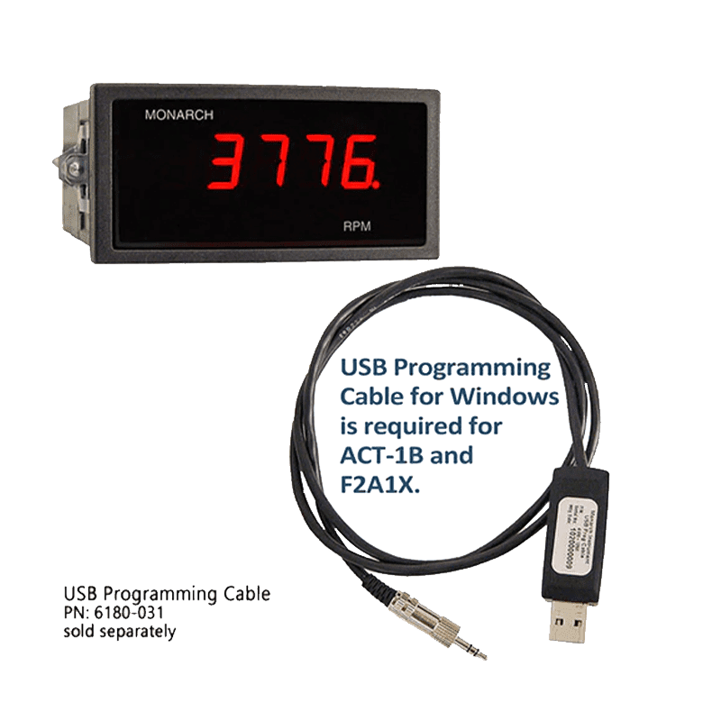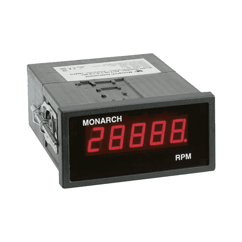 The ACT-1B Digital Tachometer is a value-priced, 1/8 DIN-sized device with a 5-digit LED display, offering a broad 5 to 99,999 RPM range. This user-configurable tachometer is compatible with various speed sensors and provides real-time data viewing on a PC through the free PM Remote Software. With universal AC power support and optional DC power, it is versatile for multiple applications such as process monitoring, research, engine performance analysis, and more. The tachometer features optional analog output, TTL pulse repeater output, and NIST Traceable Certificate for added precision. The included PM Remote Software allows easy customization, real-time data display, and direct streaming into Microsoft Excel™. The device’s technical specifications include a 5-digit LED display with ±1 RPM accuracy and a temperature range of 32 °F to 122 °F. It accepts various sensor inputs, making it suitable for diverse industries and applications.