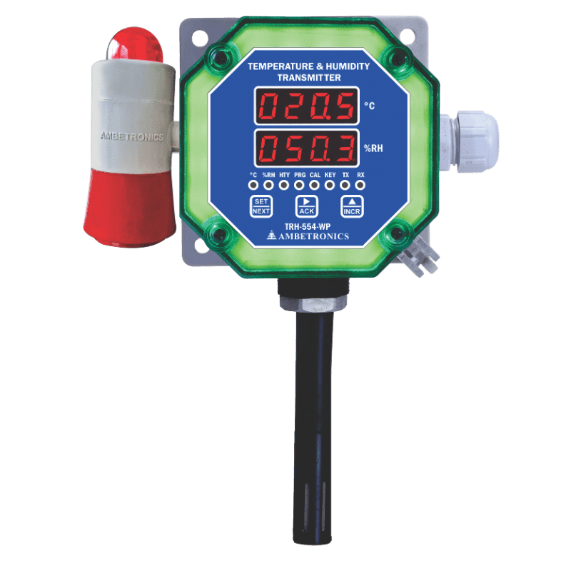 The TRH-554-WP Temperature & Humidity Transmitter boasts highly accurate digital sensor technology ensuring swift and dependable readings. With a temperature range spanning from -20 to 60°C and a humidity range of 0 to 100% RH, it guarantees precise measurements with an accuracy of ±0.5°C for temperature and ±2% RH for humidity. Featuring a user-friendly interface with three keys for easy handling and programming, this transmitter also offers password-protected settings and software calibration for enhanced control and security. Its compact design and weatherproof housing, rated IP-65, make it suitable for a variety of applications including clean rooms, pharmaceutical facilities, and indoor air quality monitoring. With optional alarm relay contacts and isolated RS-485 communication, this transmitter ensures comprehensive monitoring and control, making it an ideal solution for critical environments where precise climate control is essential.